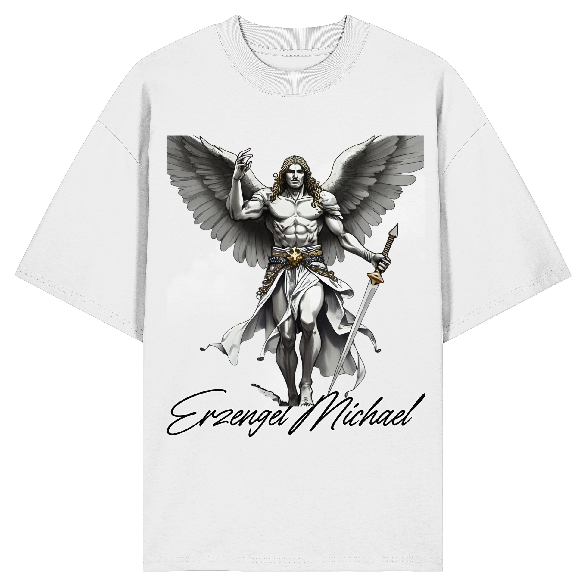 Erlebe die majestätische Präsenz des Erzengels Michael auf diesem exklusiven, limitierten Oversize-Shirt. Der beeindruckende Engel in seiner strahlenden Rüstung symbolisiert Mut und Schutz. Die sorgfältigen Details und die kraftvolle Pose inspirieren Stärke und Zuversicht.